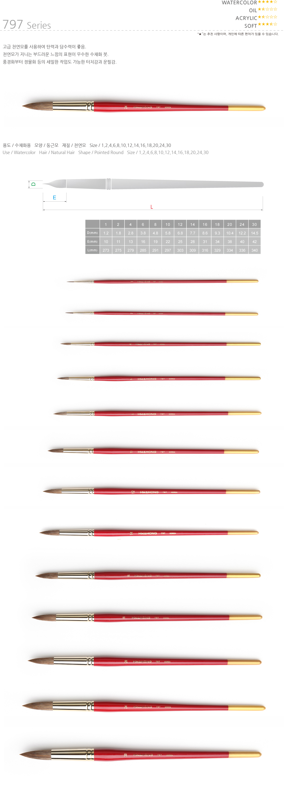 스쿨문구 화홍 797R 14호 수채화 붓 브러쉬 화방 미술 그림 용품