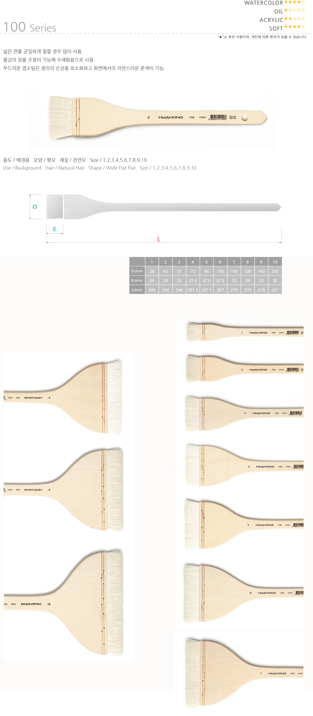 스쿨문구 화홍 100F 08호 배경 붓 빽 붓 브러쉬 화방 미술 그림 용품