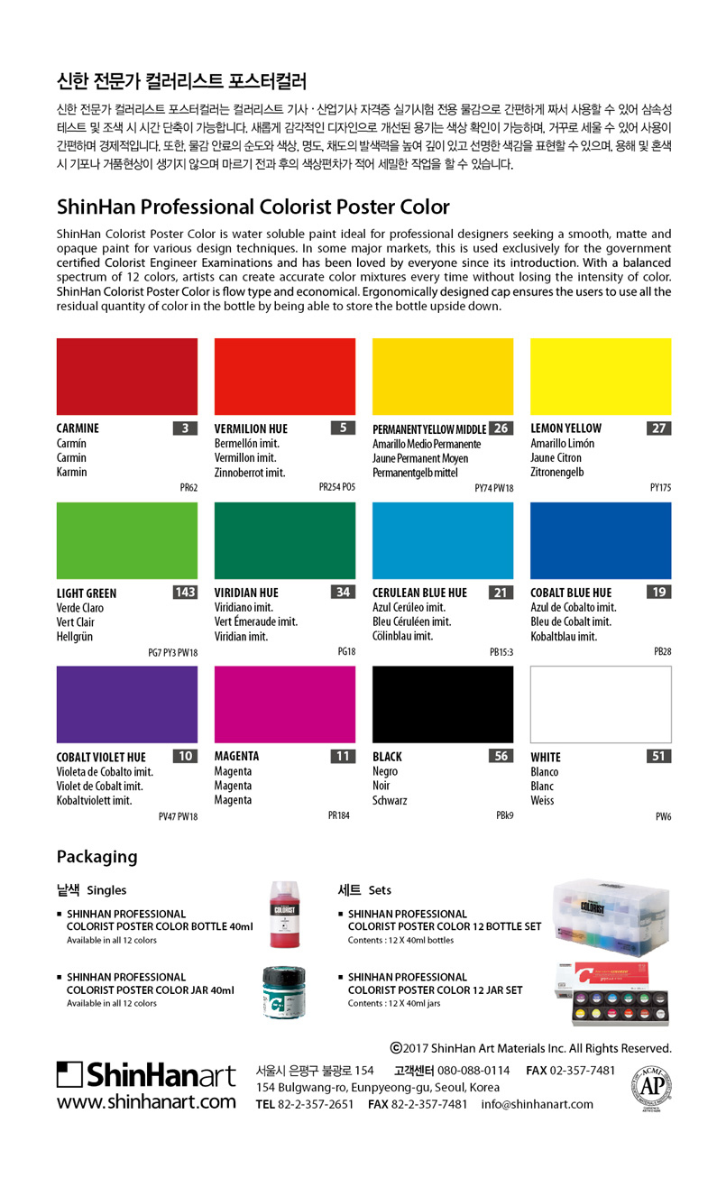 신한 컬러리스트 포스터 컬러 40ml Bottle Twist 낱개 물감 #27 레몬 옐로