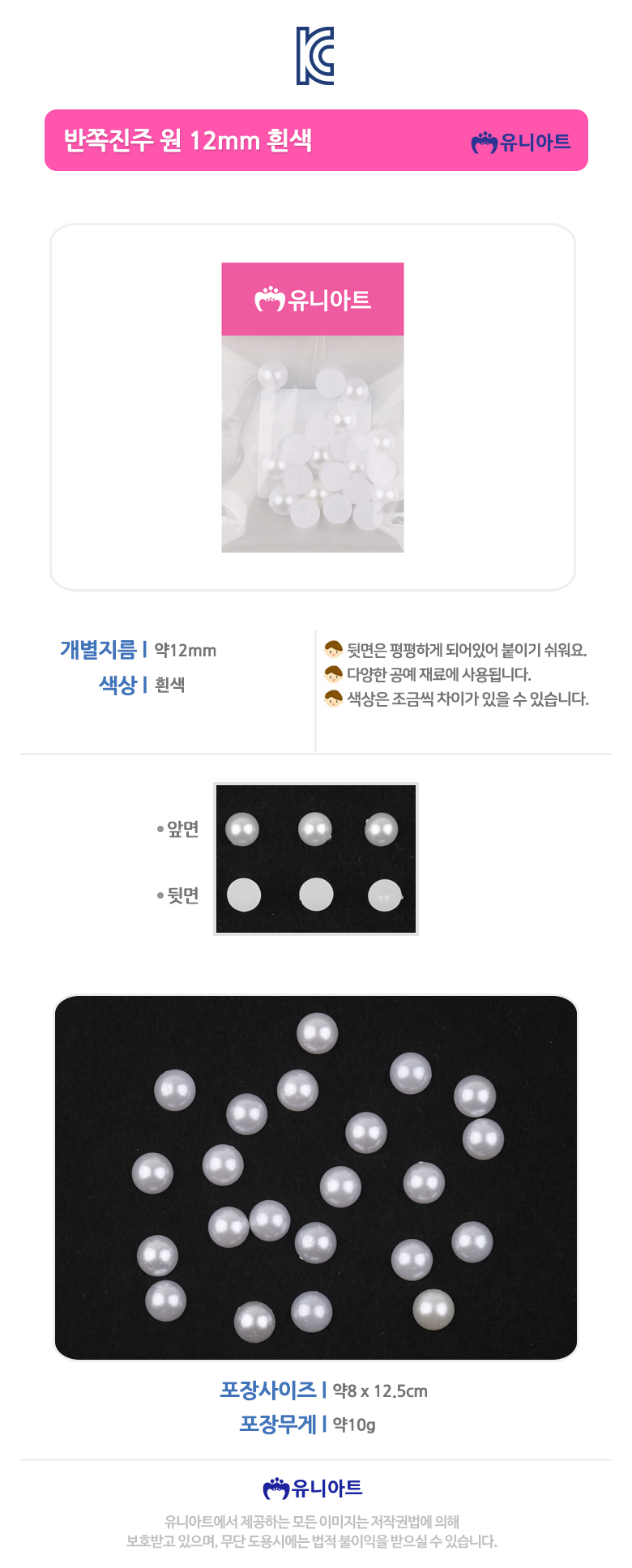 유니아트 1000 반쪽진주 원 12mm 흰색 diy 만들기