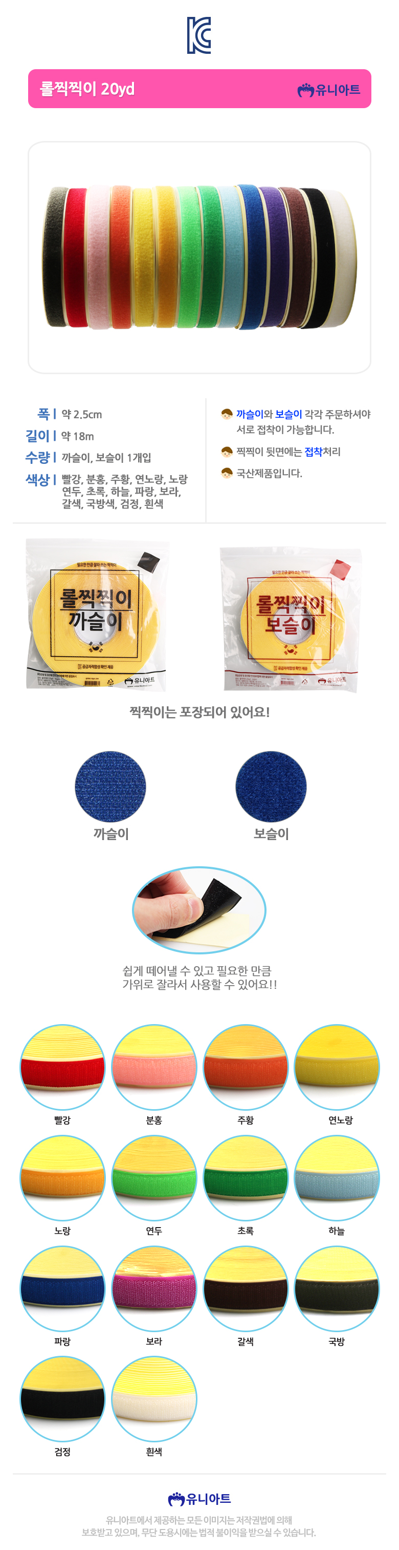 유니아트 10000 롤찍찍이 까슬이 20yd 흰색 diy 만들기