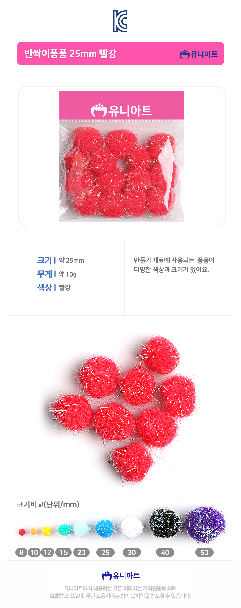 유니아트 1000 반짝이 퐁퐁 25mm 빨강 diy 만들기