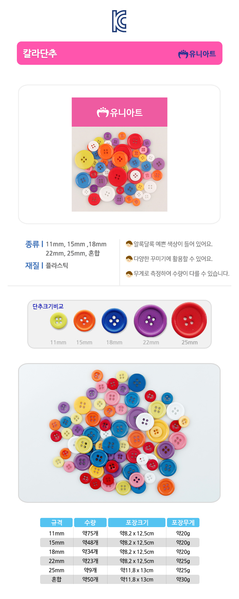 유니아트 2000 칼라단추 25mm diy 만들기