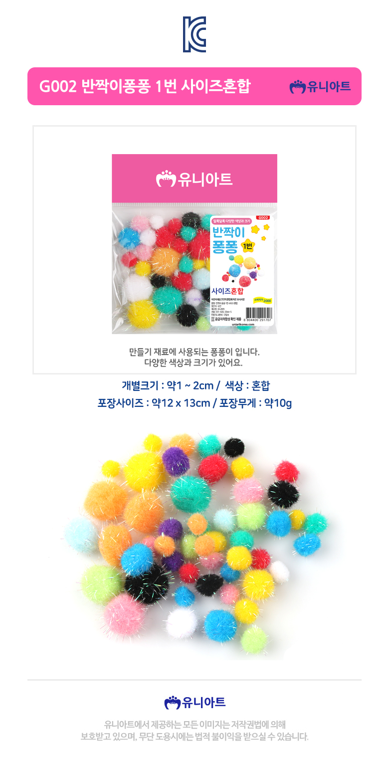 유니아트 2000 반짝이 퐁퐁 1번 사이즈혼합 diy 만들기